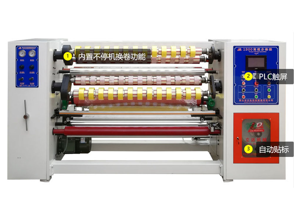 適用范圍:適用于各類透明封箱膠帶、印字印刷封箱膠帶半成品母卷的分條加工